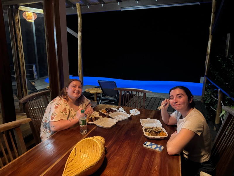 After eating and chatting and laughing, we hit the road back to the house (Abigail literally hit the road, falling as we left the restaurant). A quick skinned knee cleaning and a short dip in the pool once we got back and now start winding down for the night.