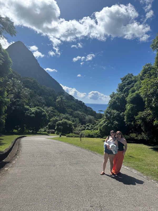 So post breakfast, post planning, we hit the road for the Jaloise or Sugar Bay beach. I swear, picking the longer sketchy road over the shorter death road… I felt like we were there in ten minutes, where it had been feeling more like 45 minutes. We find the resort and are directed to parking. This place is insane, directly on the inlet between the two pitons. We walked down the steep road until we reach the resort.