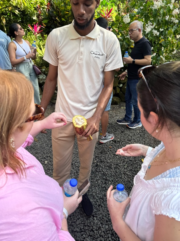Everybody up and out by 8:30, heading to Project Chocolat at the Rabot estate.